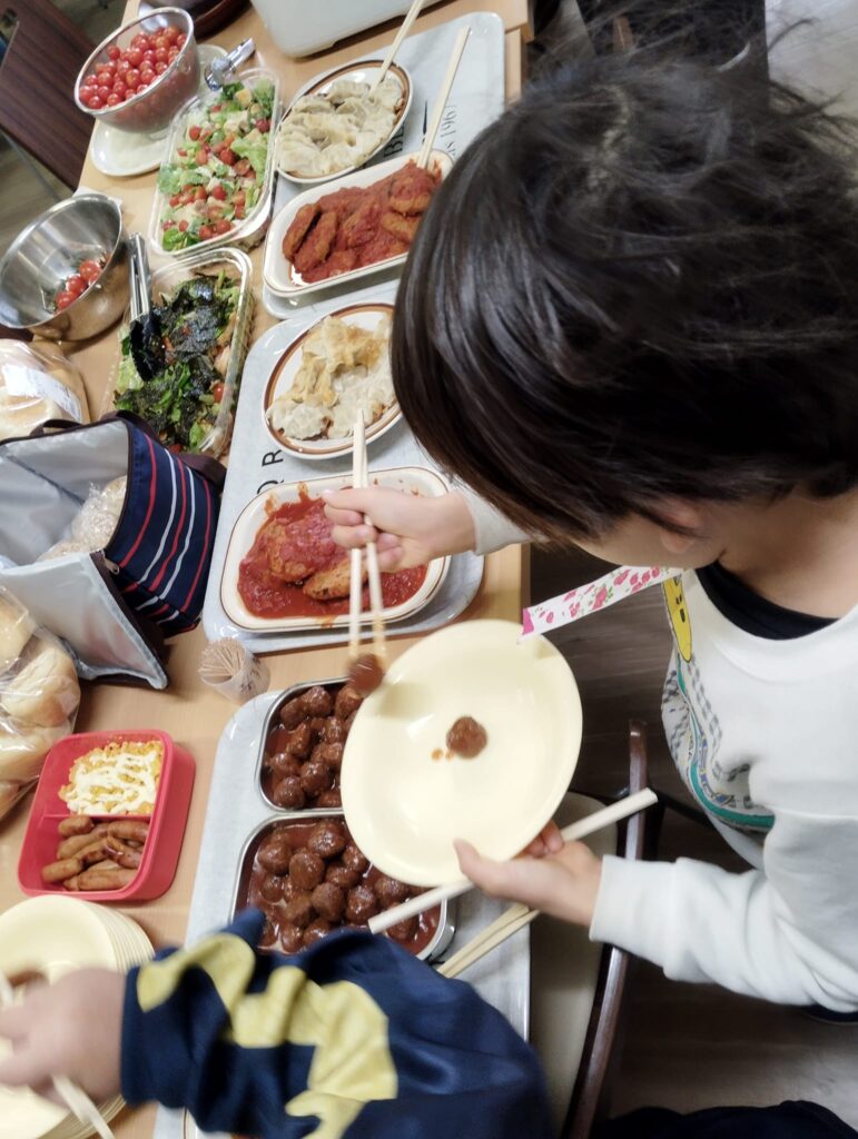 お昼は、マミさん食堂がお休みだったので、シンママ食堂と題して、サポーターさん、運営メンバー、ママさんにもお手伝いいただき、美味しいのがたくさんできました!