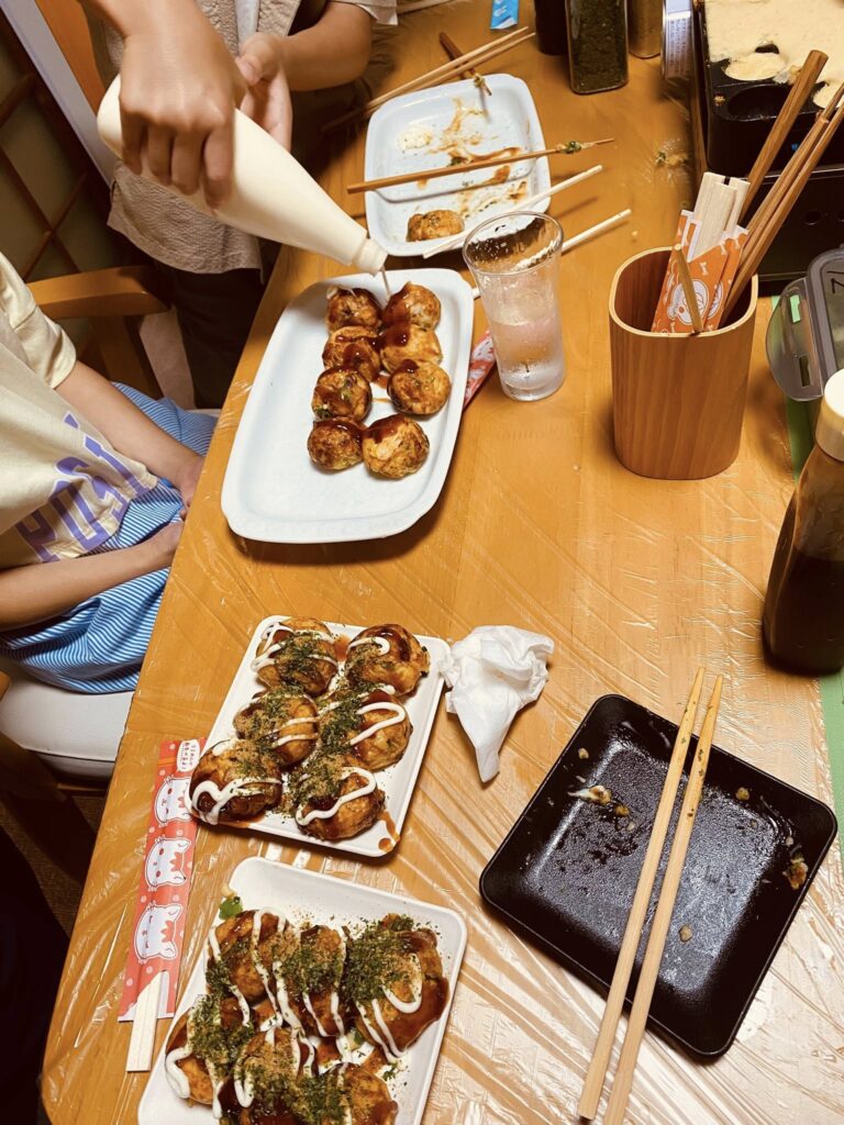 月のごはん会 2025.06.15 子どもたちとの楽しいひと時タコパ、イタリアンパスタ、お料理サポーターさんのご協力で、子どもたちももりもり食べてくれました。普段は、大人数で暮らしているので、自分たちのためだけに作ってもらったごはんは格別だったようです!