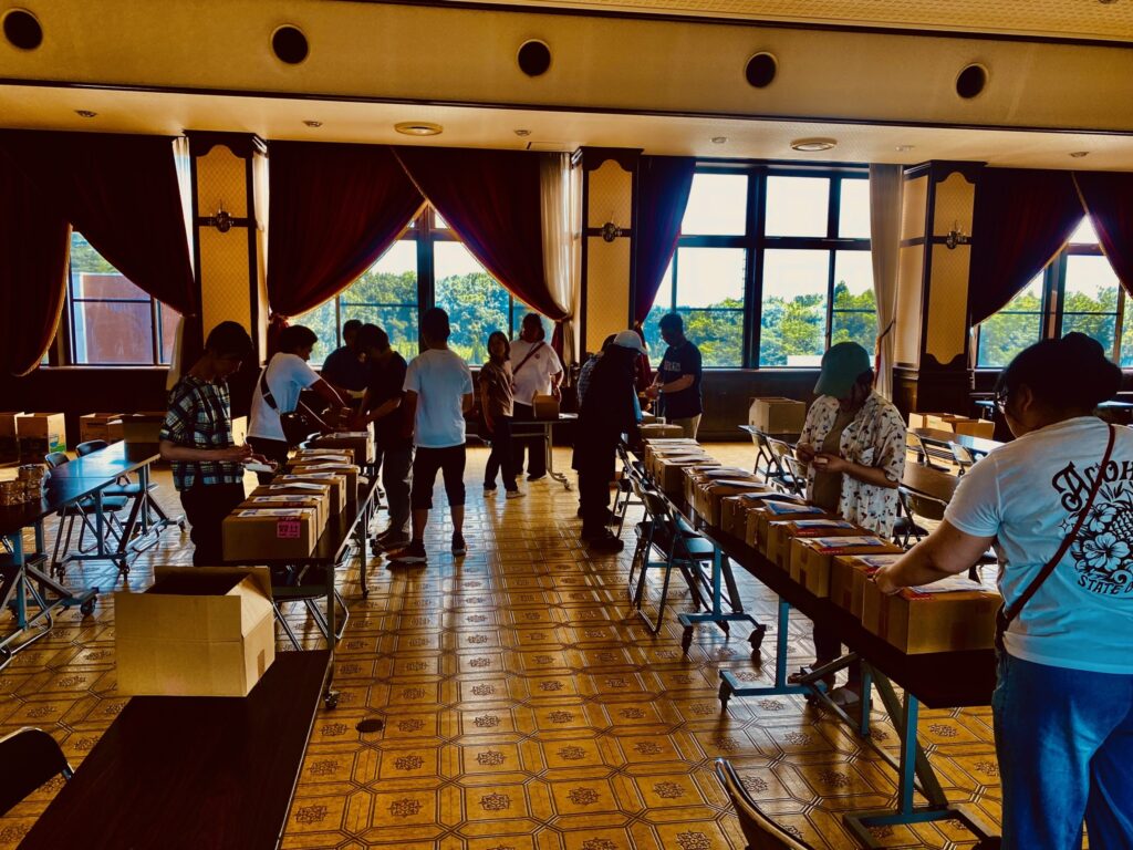 午後は、子どもはプールへ。尚絅大学こども教育学部の学生や短期大学部幼児教育学科の学生たちが子どもたちと思いっきり遊んでくれている間、ママとサポーターさんとでしあわせBOXの箱詰め作業をしました!どうしたらうまく入れられるか、みんなで話し合ったり、試行錯誤しながら作業しました。ここでは、それぞれがそれぞれに自分のできることを持ち寄って関わってくださるので、それが何よりも嬉しいです。