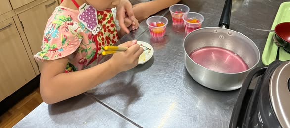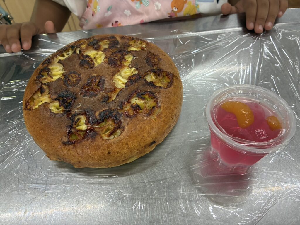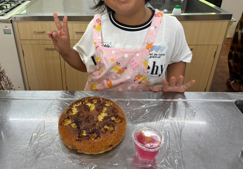 午前中は、特定非営利法人「チーム学校給食&食育」の守田真理子先生と尚絅大学生活科学部の学生さんによる子ども料理教室で、炊飯器でできるバナナケーキとゼリーを作りました!子どもたちの感想には、ママやきょうだいに作ってあげたいと!