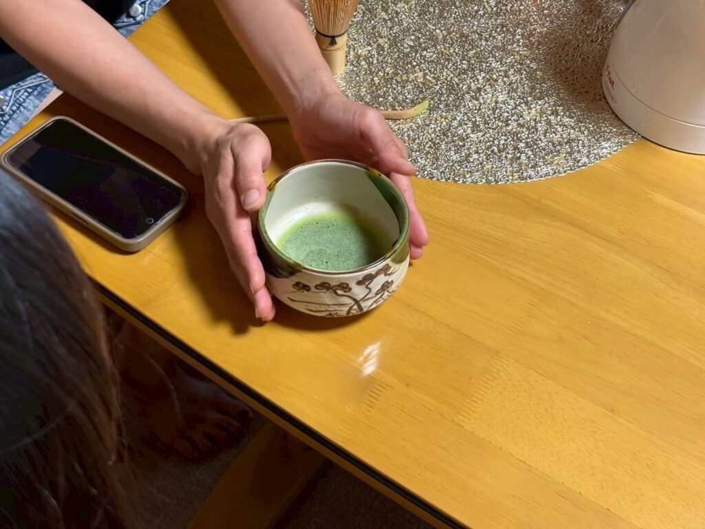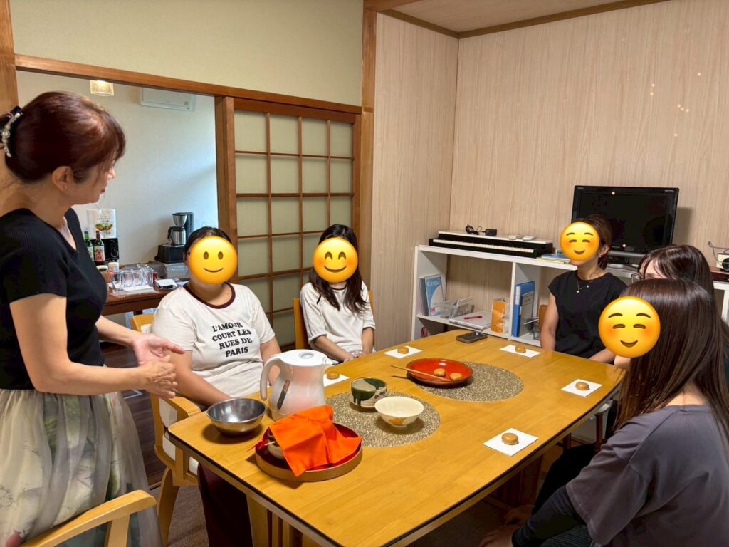 ママたちは日頃のご褒美の時間。お抹茶をたてて美味しいお饅頭や羊羹とともに話が弾みました。こんな時間はとても貴重です。