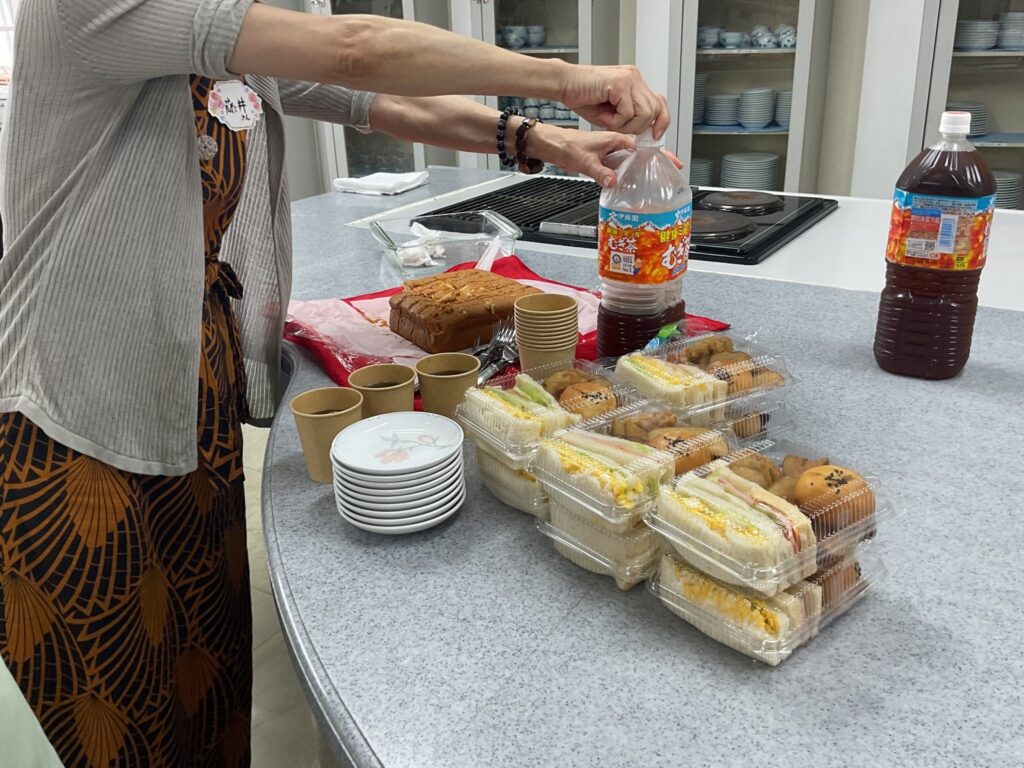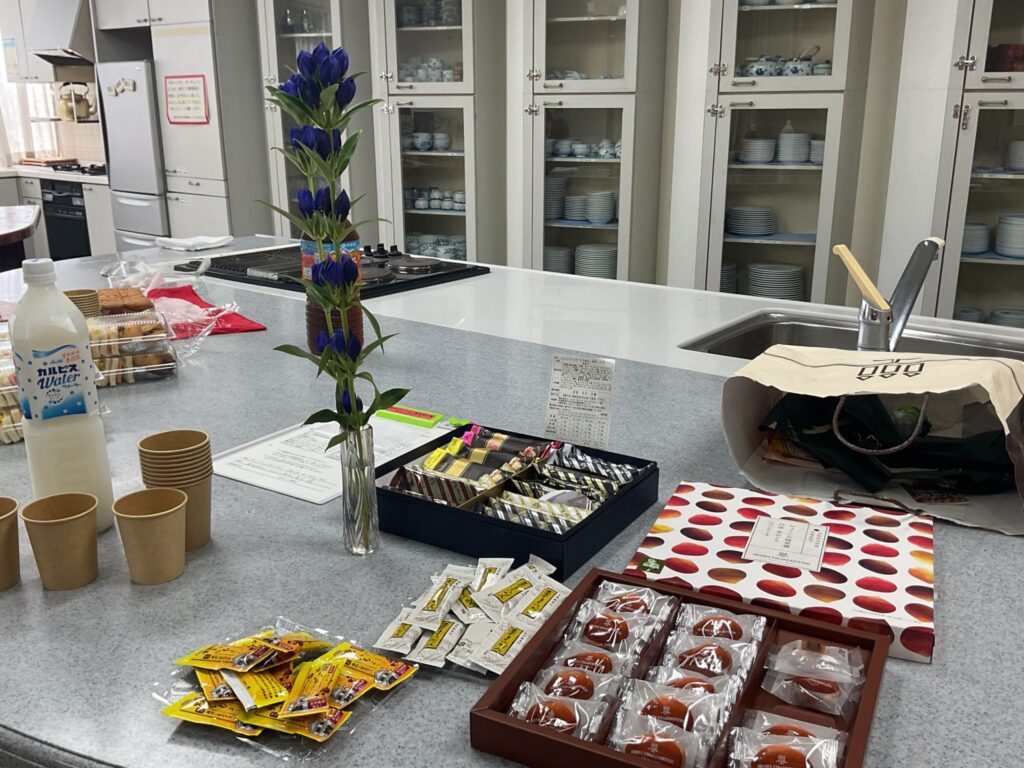 12:30〜14:45までは、なぜか女子会のようになり、ランチBOXとサポーターさん手作りのぐりとぐらのカステラ、寺内さんのお土産のお菓子をほおばりながら、もう話がつきませんでした。
